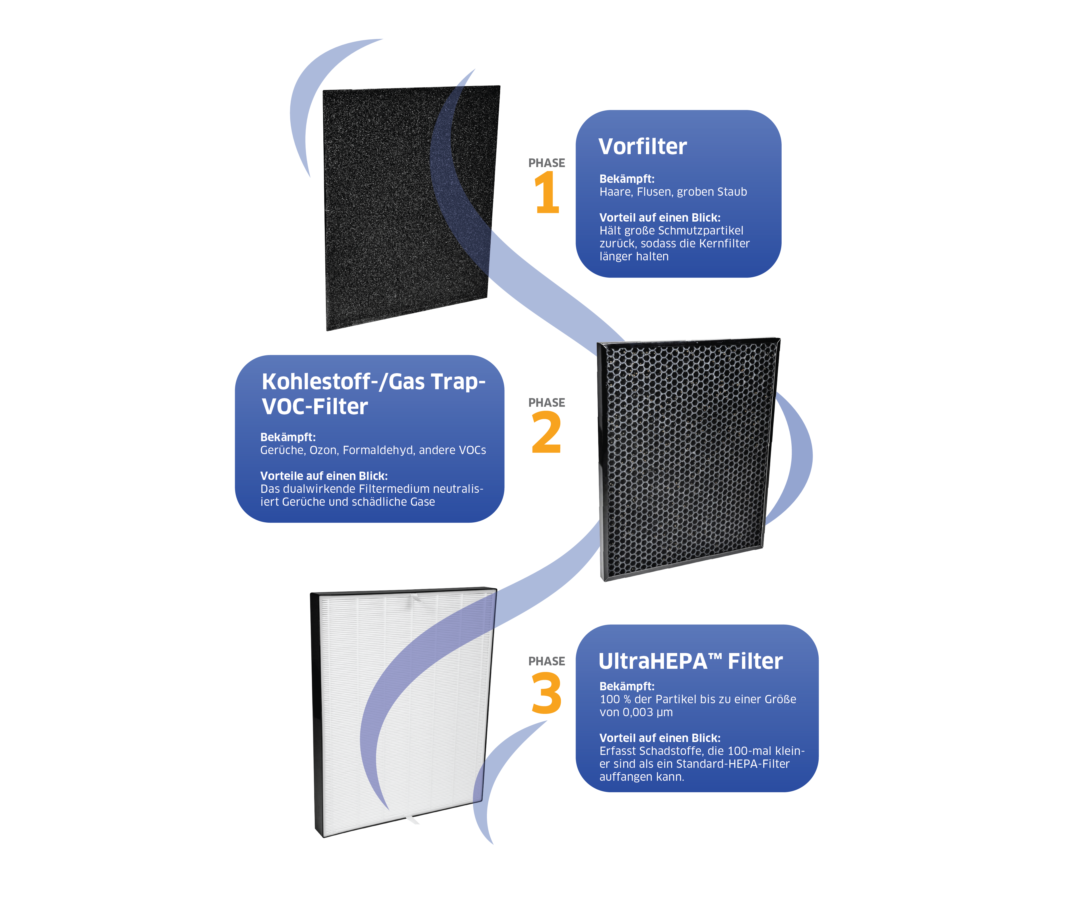 ☑️ UltraHEPA™-Filterung fängt 100% der Partikel bis zu 0,003 µm klein ein